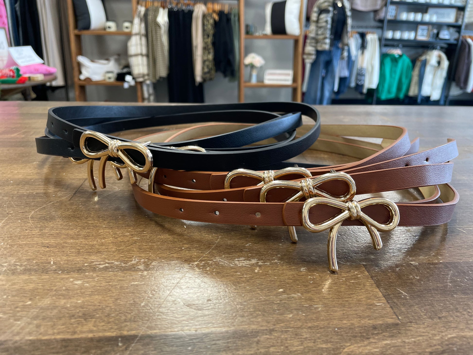 Bow Leather Skinny Belt. Elegant Waist Cincher.