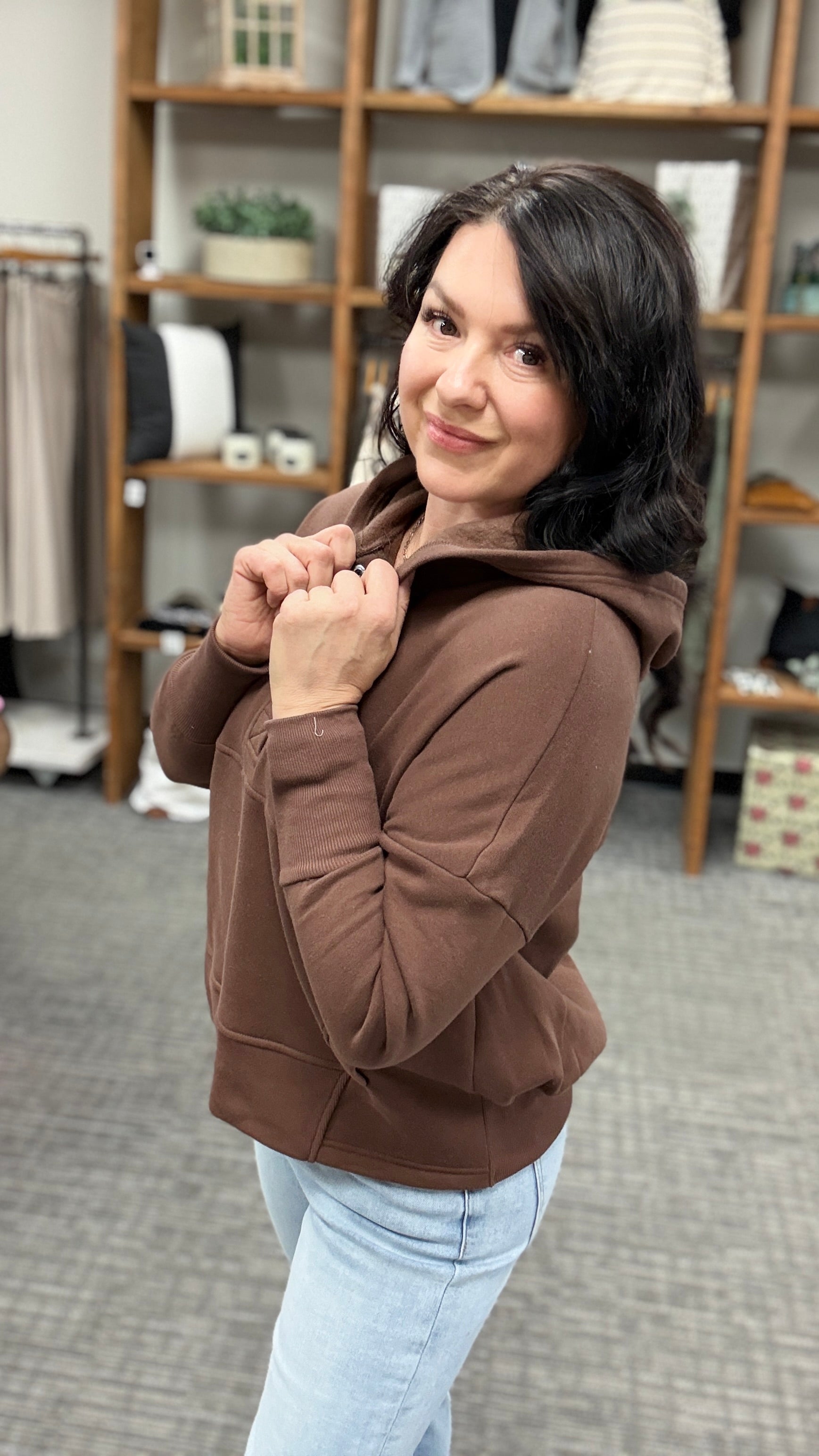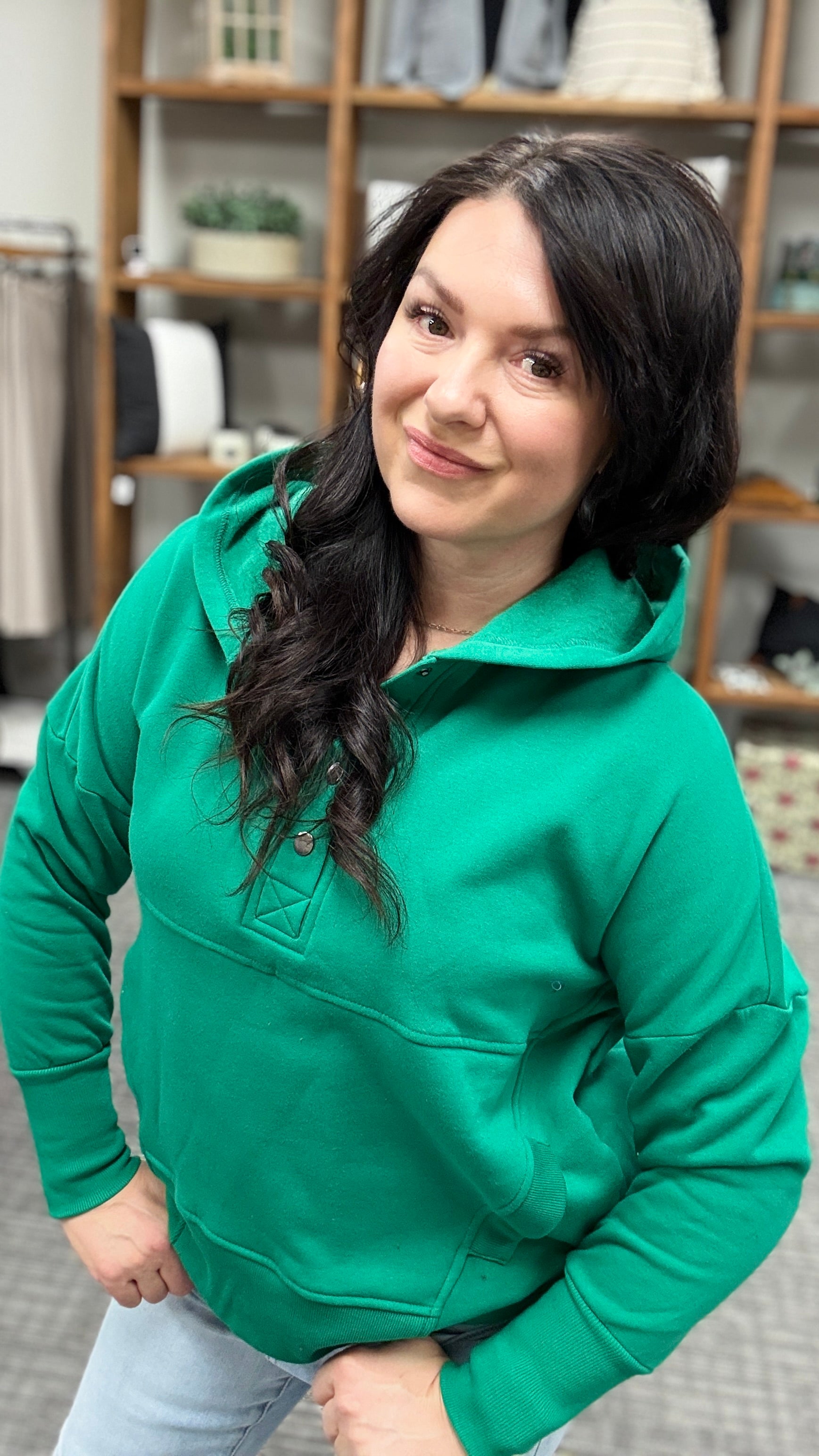 Fleece half snap button hooded sweatshirt