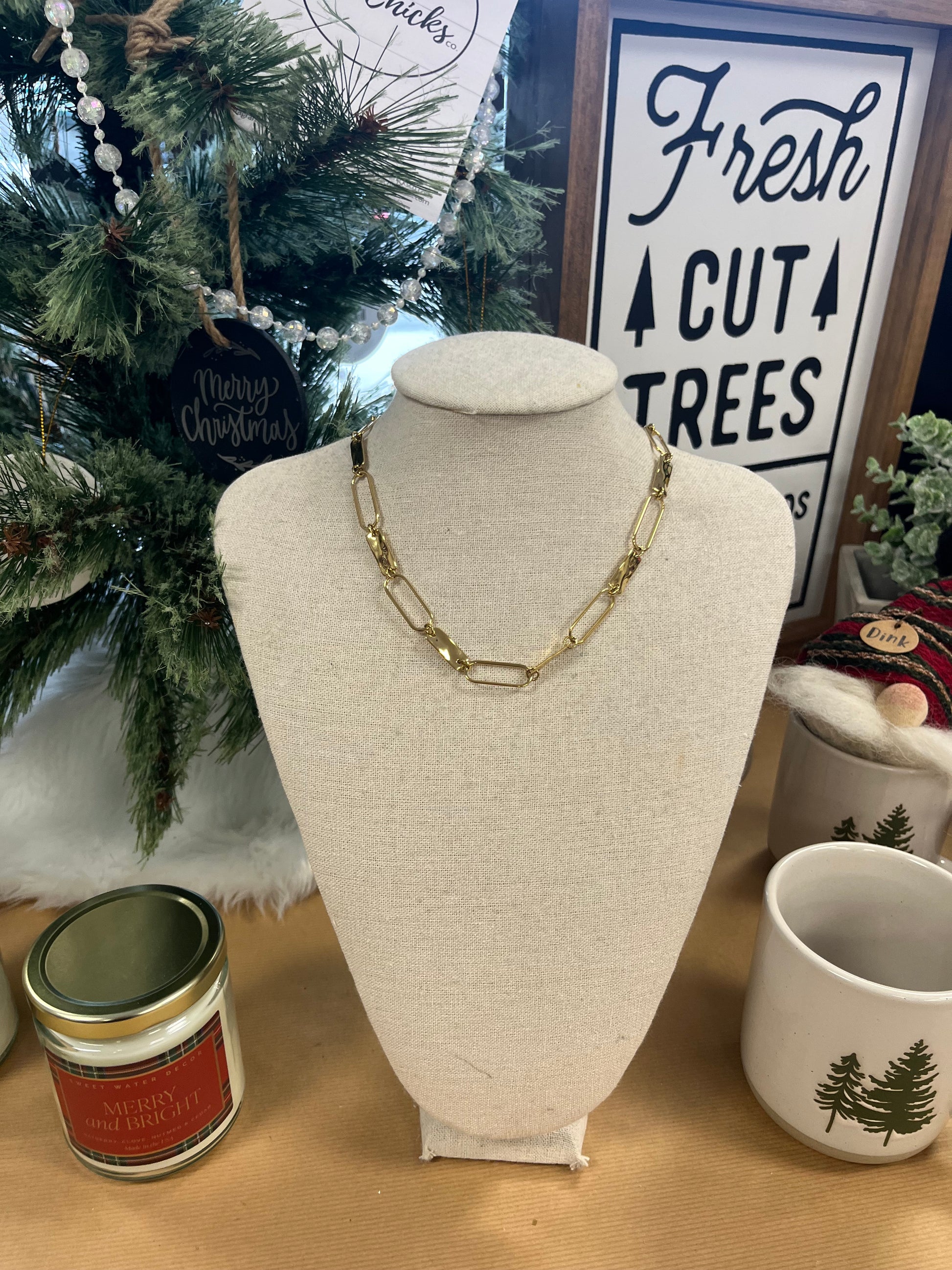 Gold Open Oval Link Chain Necklace