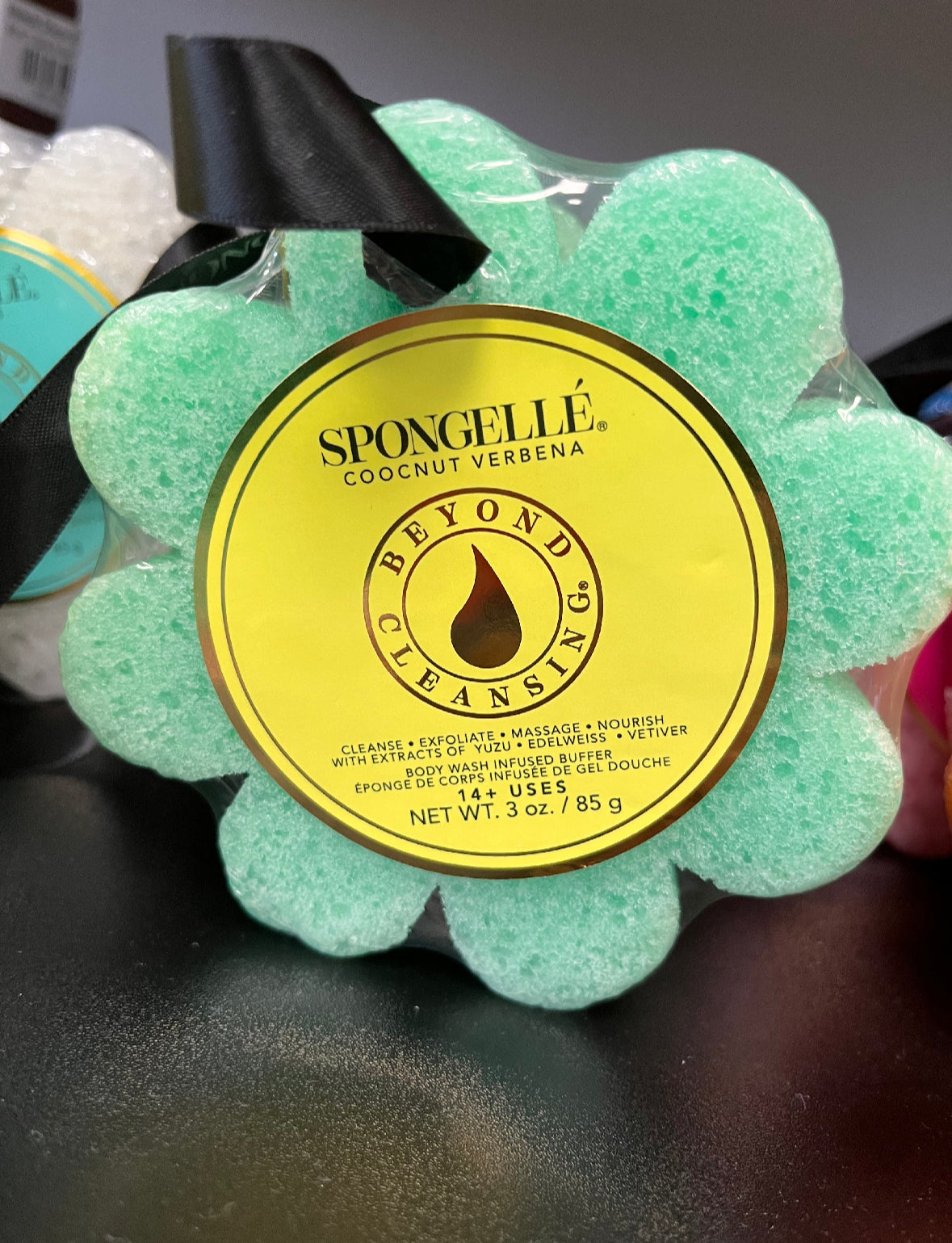 Cleanse, Exfoliate, Massage, and Nourish with a body wash infused buffer, good for 14+ uses.